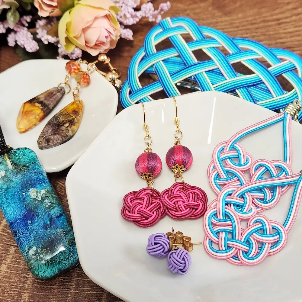 色合わせが楽しく、一つ一つの結びに日本人らしい「祈り」や「願い」込めた水引の魅力に魅せられ、気軽に身に着けられるアクセサリーを作り始めました。